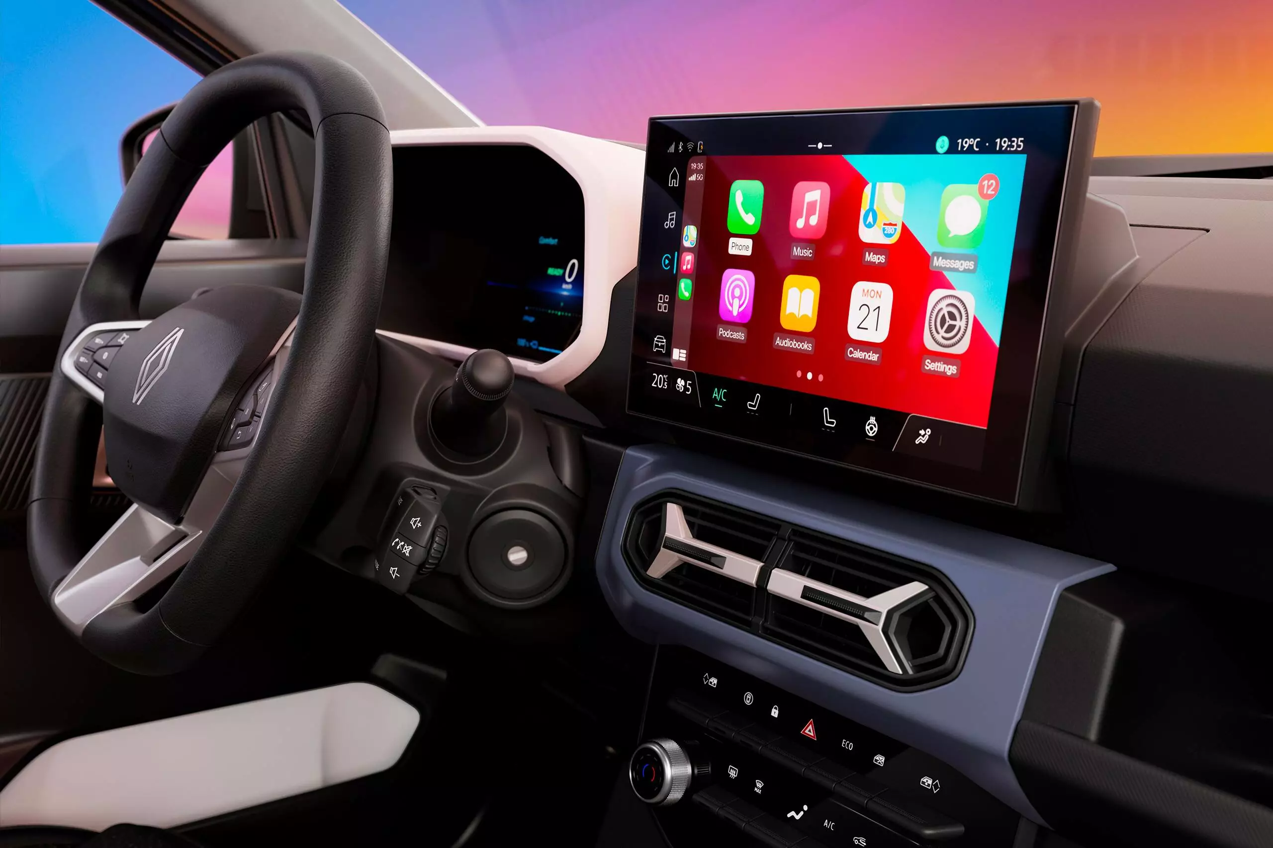 Aproveite a praticidade e o estilo do novo interior do Kwid E‑Tech que conta com porta-objetos com 13,8 L de espaço, um painel elegante e funcional. O multimídia elevado de 10'' com espelhamento sem fio garante melhor navegação.