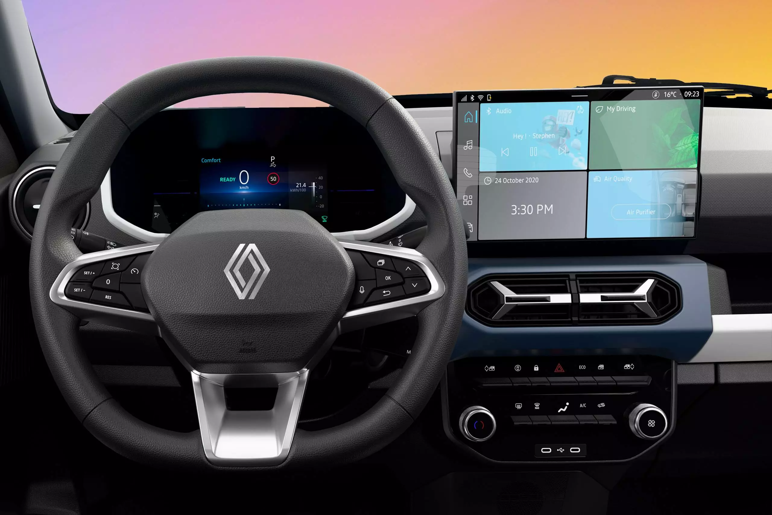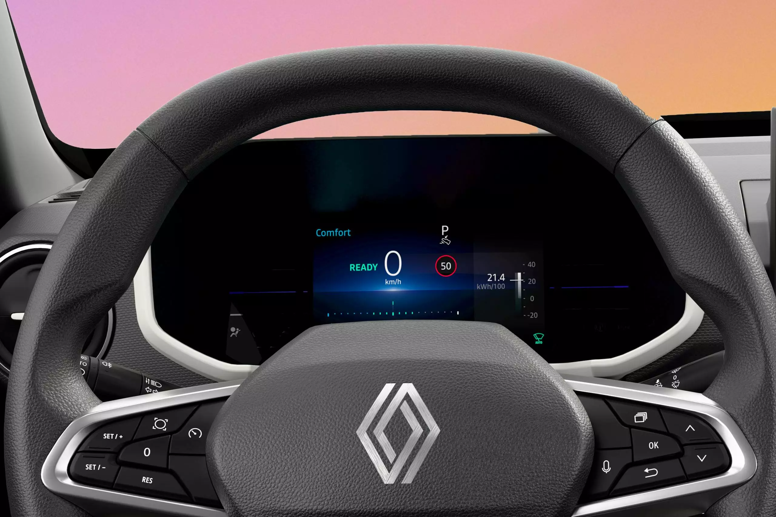 O painel 100% digital oferece uma visualização clara e em tempo real para você acompanhar seu Renault Kwid E-Tech 100% elétrico. Controle sua velocidade, seu consumo e receba avisos visuais.