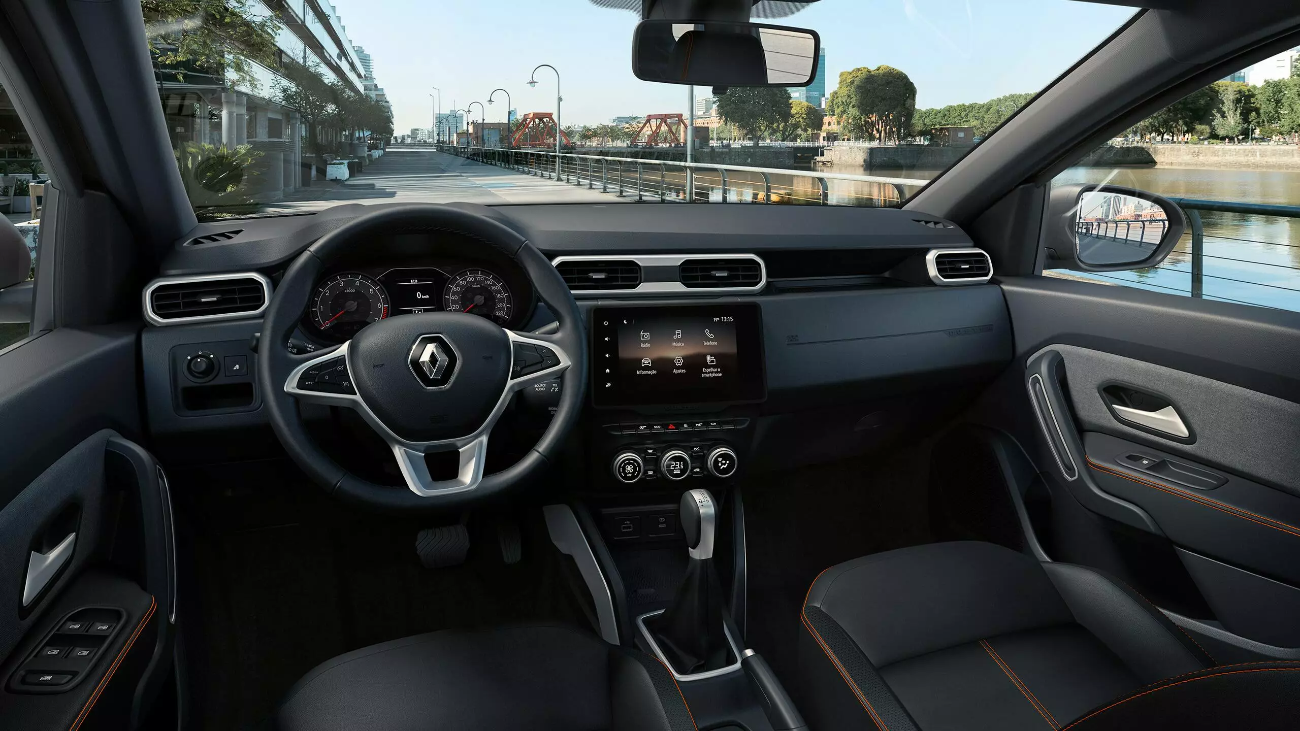 Para você dirigir ainda mais conectado, o novo Renault Duster tem multimídia touchscreen de 8 polegadas com espelhamento sem fio de smartphone Apple CarPlay e Android Auto. Tem mais: você pode ver até 4 câmeras para fazer balizas. Muito mais controle e visibilidade para estacionar.
